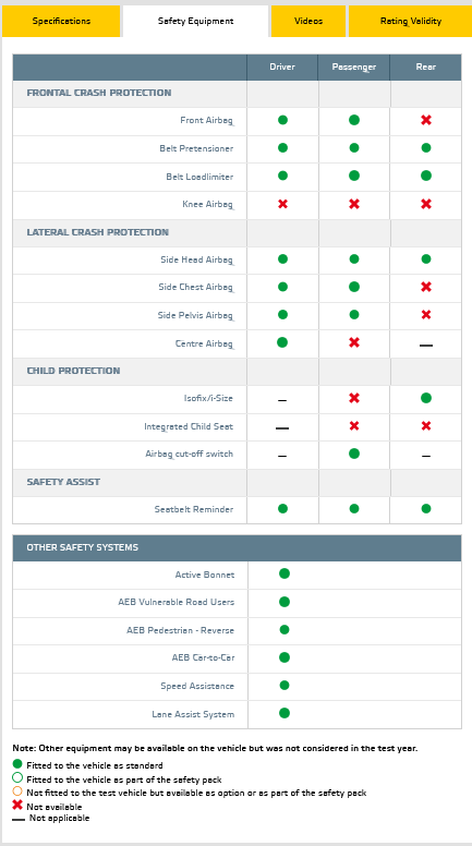 This sum serves as the basis for comparing the vehicles. Vehicles qualify for the title of best in class based only on their rating with standard safety equipment. Additional ratings based on optional equipment are excluded.
