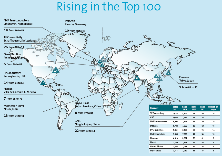The semiconductor manufacturers around NXP and Infineon are unsurprisingly among the shooting stars of the industry.